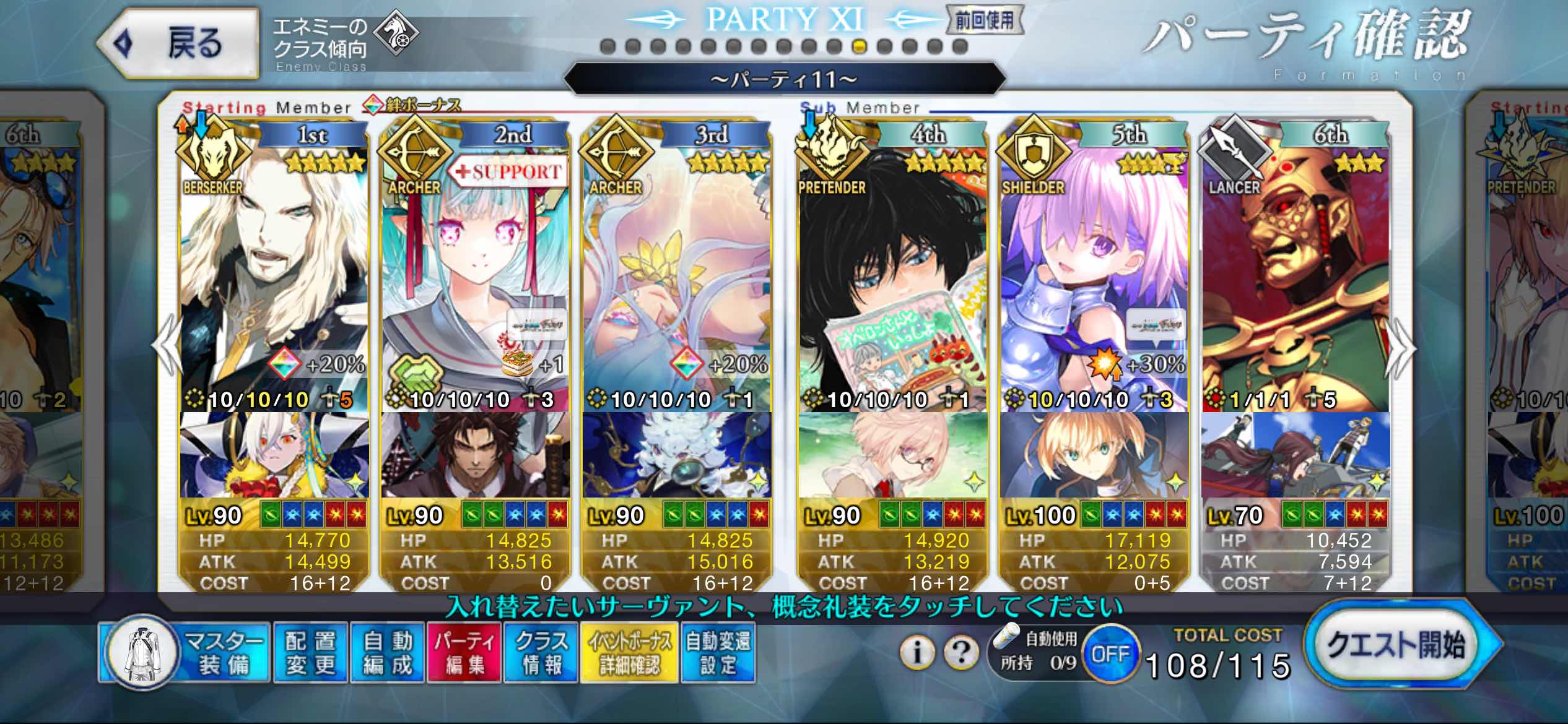 禮裝只需要一張滿突的傷害禮裝 其他可以隨便擺 master衣服也能隨便穿